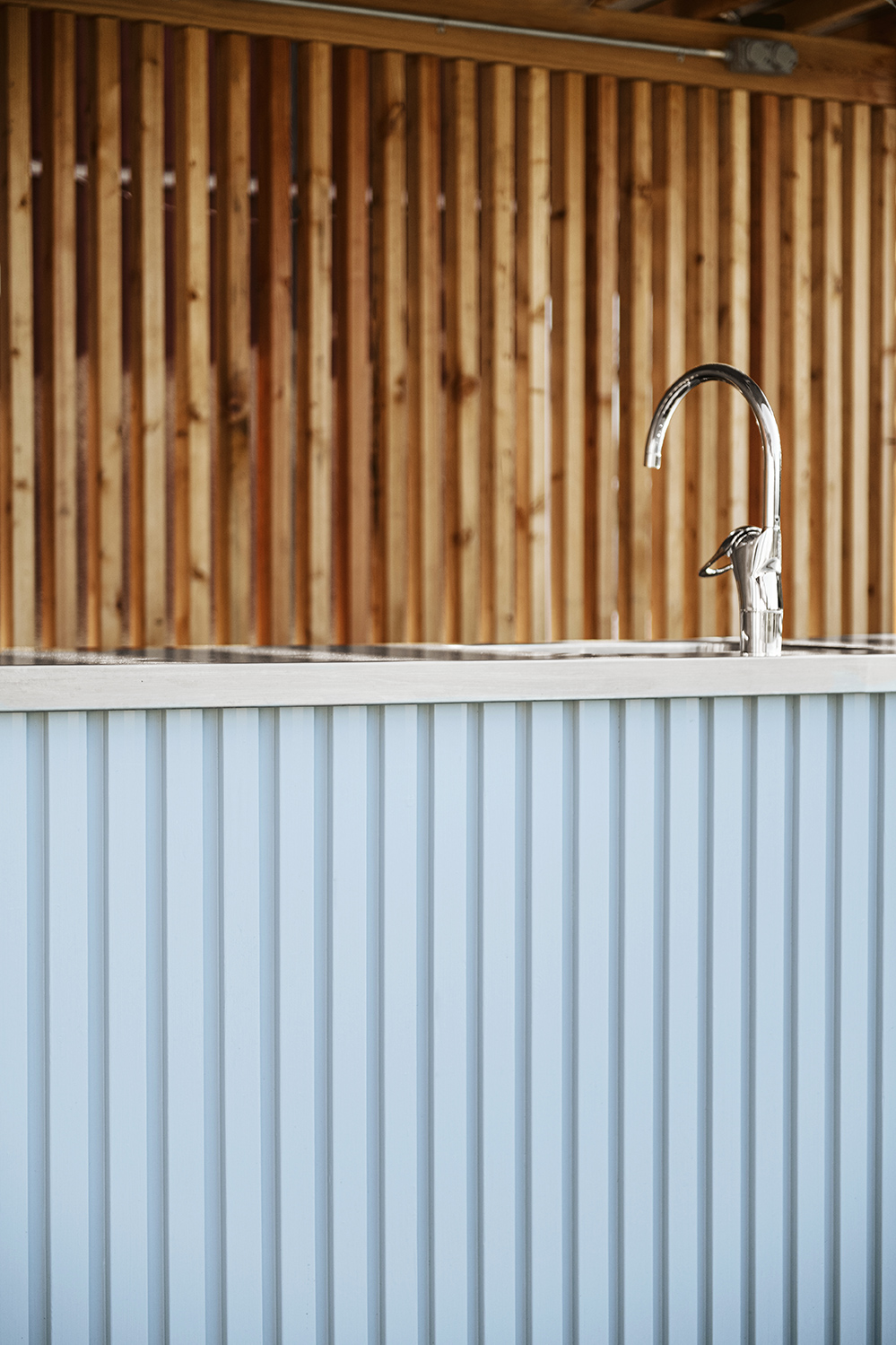 av trämaterial. Pergolan byggs av furu i smäckra dimensioner och